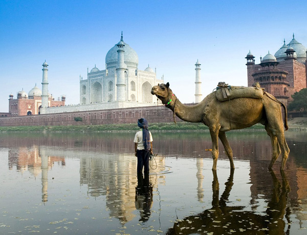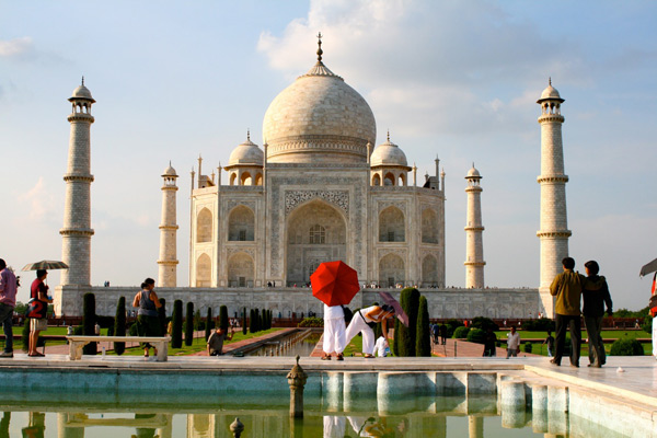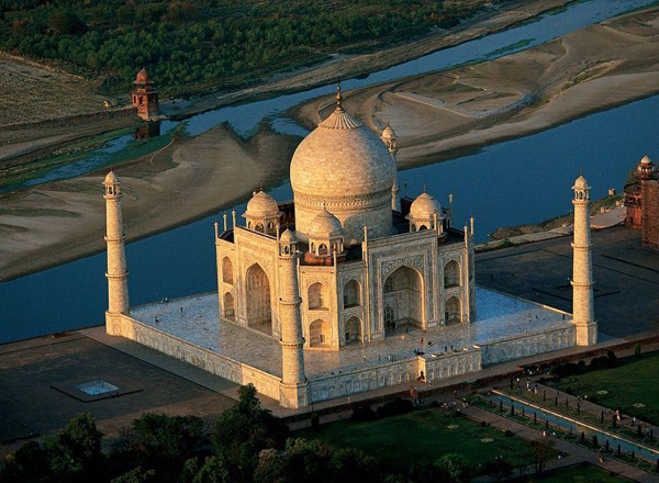 Taj Mahal of Agra is one of the eight wonders of the world and perhaps the only one dedicated to Love. Its architectural beauty and marvelous precision surpassed all architectural forms. The Taj is the most beautiful monument built by the Mughal Emperor Shah Jahan in memory of his beloved wife Mumtaz Mahal. The entire mausoleum is built entirely in white marble. Its stunning fountains and gardens create a dream ambience especially when the Taj Mahal glows in the light of the full moon.